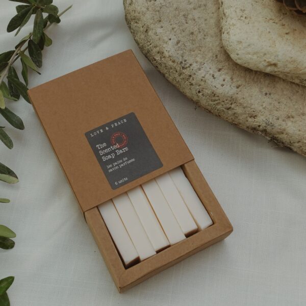 סבון ריחני שנעשה בעבודת יד עם הרבה אהבה. מוצר משלים מעולה למכורי הניחוח Love & Peace שרוצים ליהנות מהפצת הריח במקומות שונים בבית. ניתן לפתוח את הקופסה מעט ולאחסן במקומות סגורים כמו ארון הבגדים (מבלי שהסבון עצמו יגע בבגדים) או להפריד בין הבדידים ולהניח במקומות שונים לצורך הפצת ריח. בעינינו זו המתנה המושלמת כשמתארחים אצל חברים ולא רוצים להגיע בידיים ריקות.