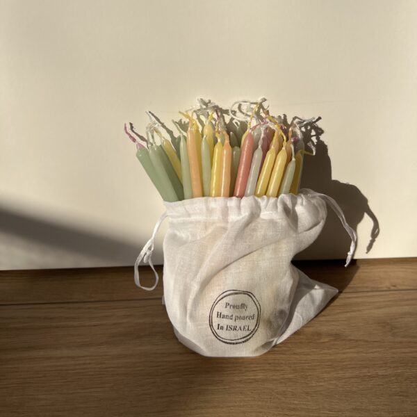 נרות חנוכה איכותיים בצבעי פסטל משמחים ומרעננים. מיקס של צבעים נעימים, כך שנוכל לשמור על הסטייל בבית גם בחג החנוכה.