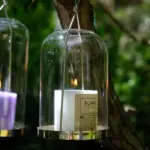 עששית זכוכית מהממת וקלאסית לנר יצוק, שמתאימה לתלייה וניתנת לשימוש בפנים או בחוץ.
