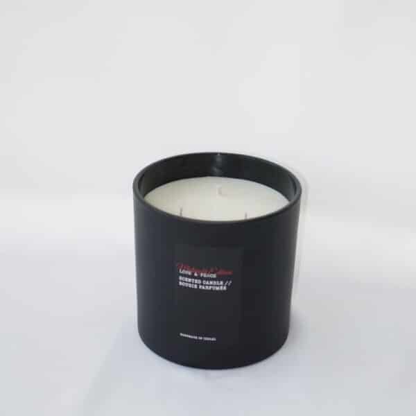 קולקציית Love & Peace הנמכרת ביותר בגרסת אספנות שחורה, יוקרתית וחגיגית. הניחוח האהוב והמנחם של כביסה נקייה, עכשיו בכלי שחור דרמטי עם 3 פתילי כותנה לבעירה עוצמתית.